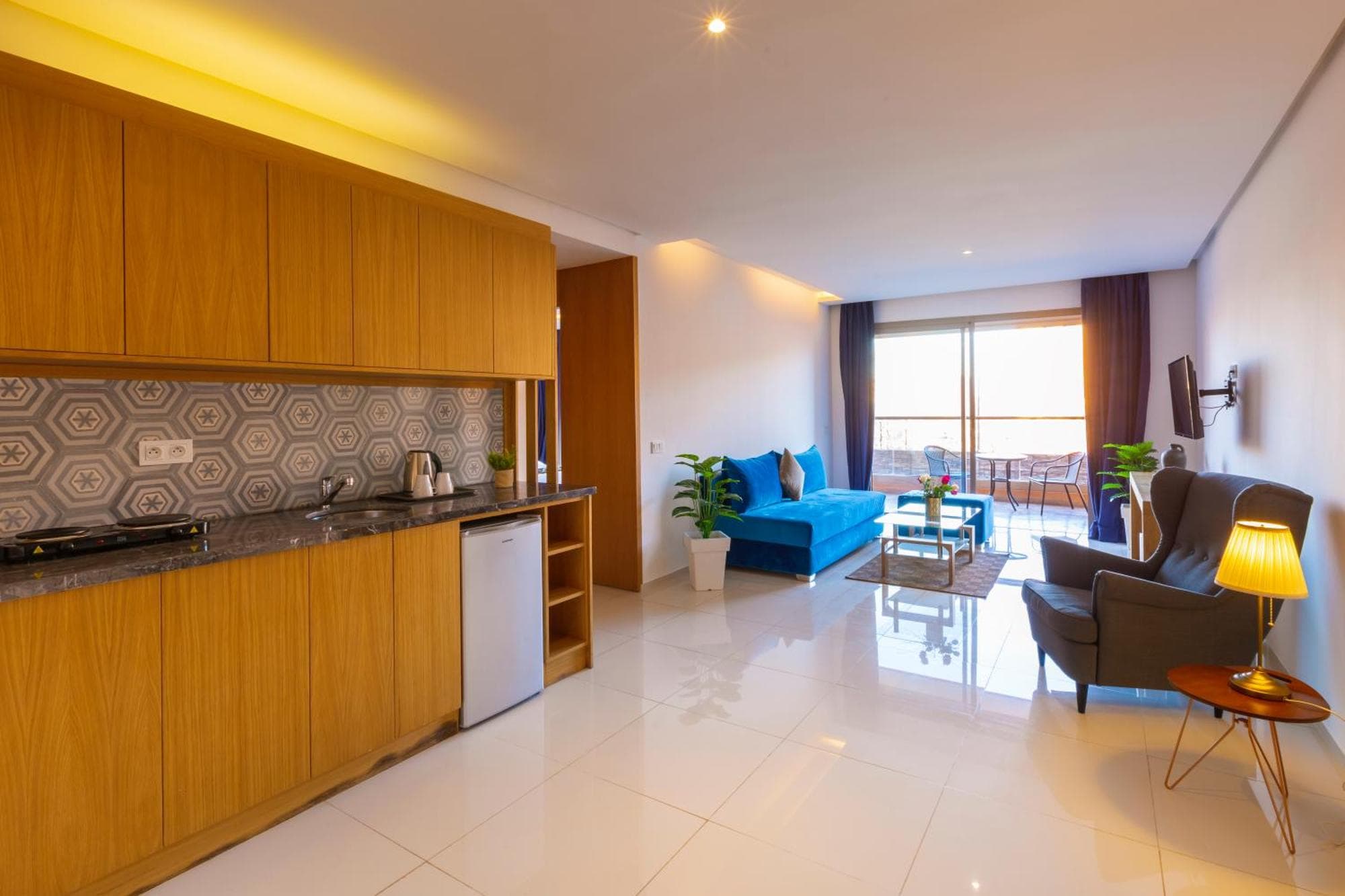 AppartHotel Atrani se află la 5 minute de mers pe jos de Gara din Marrakesh și oferă unități de cazare cu balcon, precum și o terasă. Se oferă la locație WiFi gratuit în toată proprietatea și parcare privată. Fiecare unitate include o baie proprie cu duș, climatizare, un televizor cu ecran plat și un frigider. Oaspeții cazați la acest aparthotel au la dispoziție un mic dejun continental. AppartHotel Atrani se află la 2,6 km de Grădinile Menara și la 2,8 km de Grădina Majorelle. Aeroportul Menara Marrakech se află la 3 km.